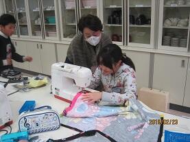 2月23日(火)の午前中、5年生の家庭科の授業支援にミシンボランティアの方に来校いただき、エプロンの制作の支援にご協力いただきました。