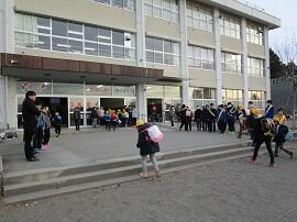 この冬一番の寒さでしたが、昇降口では元気なあいさつが交わされました。