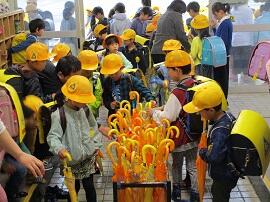 さしてきた傘は、クラスごとに決められた場所に入れています。