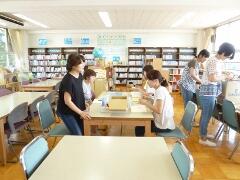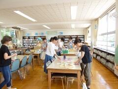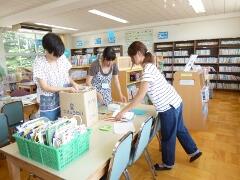 本棚の整理、読書の実作り、袋作り、本の修理をしていただきました。