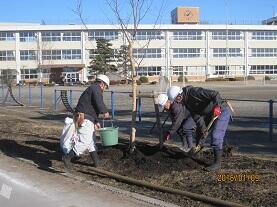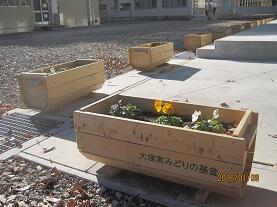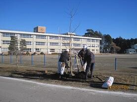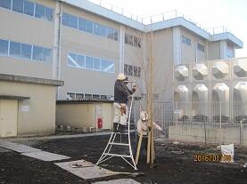 1月9日(土)「とちぎ環境・みどり推進機構」より“ふるさととちぎみどりづくり事業”として、桜の苗木と木製プランターが寄贈されました。お気づきの方もいるかと思いますが、木製プランターは以前に納品され、パンジーの苗を植えて新校舎前に設置してあります。