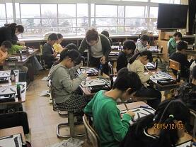 12月3日(木)2・3校時には3年生「書写」の授業に、花塚先生が授業支援に見えました。