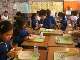 3年2組に招待されましたが、いつものように学級担任と共に給食グループに加わり、いろいろな会話も弾む中、なごやかな雰囲気で会食を楽しむことができました。