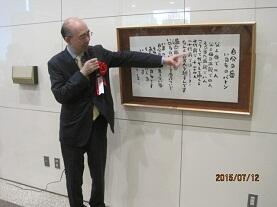 さくら市ミュージアム主催「ことばのちから―相田みつを展」開幕式に行ってきました。式では、主催者の加藤館長さんや特別協力者の“相田みつを美術館”相田一人館長さんなどのあいさつがありました。その中で、今回の特別展の開催までの苦労やさくら市とのゆかり等の話がありました。