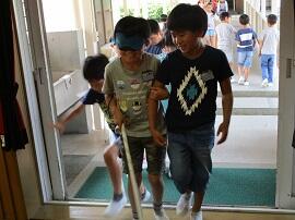 高齢者疑似体験や車いす体験、アイマスク・白杖体験などをしました。