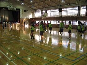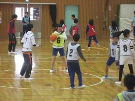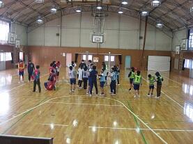 2月12日(金)は、5年1組が学級閉鎖でしたが「放課後体力向上クラブ」を実施しました。今回は、体育館で「カラフルバスケットボール」を行いました。