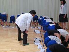 今日は、2年生と6年生の検診日です。学校医の岡先生と養護教諭の舩山先生が、検診を始める前に打合せを行います。最初に、背中の状況を一人一人岡先生が見てくださいます。それから、健診がスタートします。本校の場合、二学年ずつですが時間がたくさん必要となります。