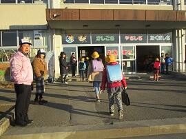 今朝は「和輪話隊(わわわたい)」(市の少年指導委員会)の皆様が来てくださいました。