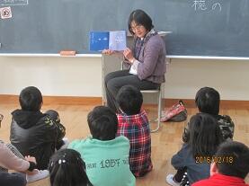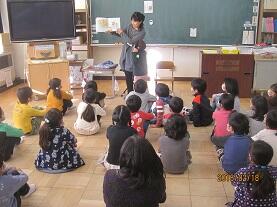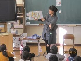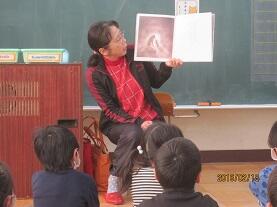 2月18日(木)の朝の活動では「アリスの会」の皆さんと保護者のボランティアの方に来校いただき、朝の読書の時間に児童向けの読み聞かせを行いました。