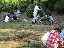 保護者の皆様には、除草や池ののろとりなどをしていただきました。