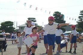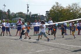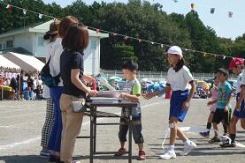 来賓種目では、日頃お世話になっている地域の皆様やお祖父ちゃん・お祖母ちゃんに1年生の代表児童がお礼の言葉を述べた後、「温泉巡り」の競技に参加していただきました。カードを引いて色々な“温泉の素(入浴剤)”を持ち帰っていただきました。大勢の来賓、祖父母の皆様にご来校いただき、子どもたちに盛大なご声援をいただいたり競技に参加していただいたりして、運動会を盛り上げていただきました。ありがとうございました。