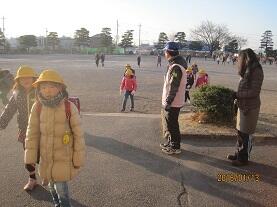 『あいさつは“あ”(明るく)“い”(いつでも)“さ”(さわやかに)“つ”(つなげよう)』を合言葉に「あいさつ運動」を繰りひろげ、今後も、明るくさわやかなあいさつが響き合うような学校づくりにつながることを期待したいと思います。寒い中、ご協力ありがとうございました。