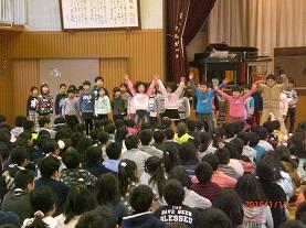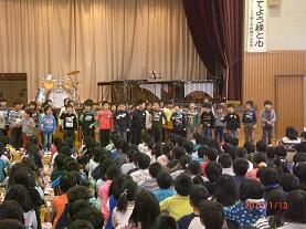 続いて、5年生が合唱とリコーダーの合奏を披露してくれました。合唱は「大切なもの」、リコーダーでは「星笛」を合奏しました。とてもさわやかな歌声とリコーダーの音色が体育館内に響いていました。各学年の演奏には他の学年の児童から大きな拍手が贈られました。