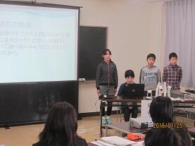 1月25日(月)の午前には、今年度の理科研究展覧会を締めくくる「理科研究発表会」が、喜連川公民館研修室にて開催されました。さくら市を代表して6年生児童4名が参加し、研究した成果を堂々と発表しました。