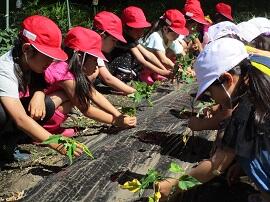 今日は1人1本ずつ、校舎裏の畑に苗を植えました。