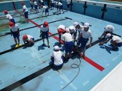5・6年生がプール清掃をしました。5年生はプール施設の清掃とプールサイドの清掃6年生はプール内の清掃を担当しました。 汚れを落とそうと必死になって作業に取り組む児童の姿が見られました。 (担当:小野里体育主任)