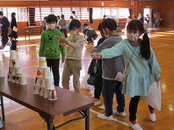 ゃや折り紙の景品で1年生を楽しませていました。2年生のお兄さん、お姉さんとなっている姿から成長を感じました。