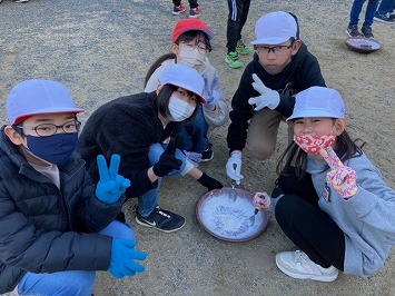 午後は塩作りをしました。海水が蒸発し塩が現れると、子どもたちは歓声をあげていました。