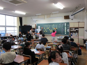 授業は、係を決めたり、教科書の問題を解いたりしていました。新しいクラスに慣れるのに、少し緊張している子もいるようです。