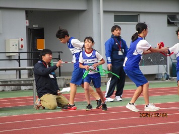 5・6年生が市内駅伝競走大会に出場しました。駅伝では、各学年3チームずつ出場し、襷をつなぎました。