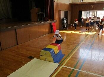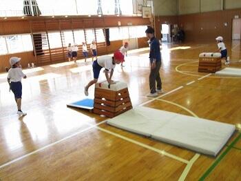 1年生は体育館で、「跳び箱を使っての運動遊び」の学習を行いました。両足でしっかり踏み切って運動しました。