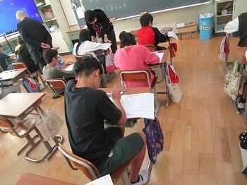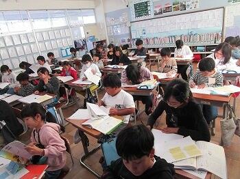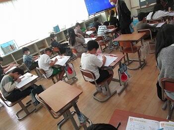 4年生は国語「もしものときにそなえよう」の学習です。根拠を明らかにして、自分の考えを書く学習を進めています。今日は、「中」のまとまりに書く内容について考えました。
