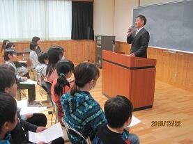 最後に、冬休みには規則正しい生活を心がけて「良い年を迎えてください」と、全校児童に声をかけ、締めくくりました。