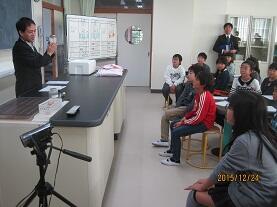 12月22日(火)6校時には、「親子学び合い事業」に続いて「中学校説明会」を、氏家中学校の生徒指導担当の先生をお迎えして、多くの保護者を交えて行われました。