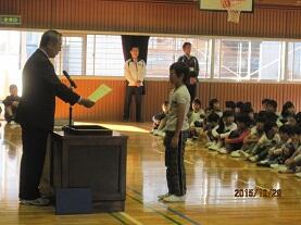 今回の賞状の伝達は、文化面では“県料理コンクール”と先日の“地区音楽祭・県中央祭”での賞状と“地区読書感想文コンクール”と“なかがわ水遊園絵画コンクール”の賞状、スポーツ活動では“ミニバスケットボール交流大会”と“学童野球大会”の賞状を伝達し、皆で称賛しました。更に、前回にも読書関係で表彰しましたが“シリーズラリー”修了者が出ましたので、認定証を手交しました。