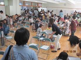 10月28日(水)午後、来年度本校に入学する予定の94名の「就学時健康診断」を行いました。保護者に手を引かれ、多目的ホールで受付をしている子どもたちは元気そのものでした。中には、少し緊張ぎみの子も見られましたが、がんばって多目的ホールから内科健診や歯科検診・眼科検診、視力や聴力の検査などを受ける会場に、本校職員の誘導で移動していました。