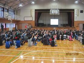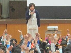 また、養護教諭からは「持久走大会に向けての注意点」についての専門的なお話がありました。更に、現在“おたふくかぜ”が流行っていることへの注意も呼びかけていました。ご家庭でも、持久走大会に向けてのコンディション作りにご協力いただけると幸いです。