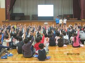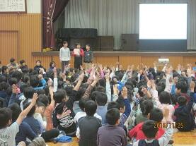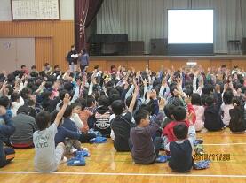 また、養護教諭からは「持久走大会に向けての注意点」についての専門的なお話がありました。更に、現在“おたふくかぜ”が流行っていることへの注意も呼びかけていました。ご家庭でも、持久走大会に向けてのコンディション作りにご協力いただけると幸いです。
