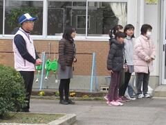 今日は、市内小中学校一斉に登校時刻が1時間遅れとなりました。歩道や車道の凍結が予想されます。特に、日陰は凍結していますので十分に気を付けて登校してください。登校時に、ご家庭でもひと声お掛けください。