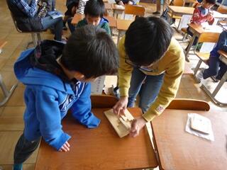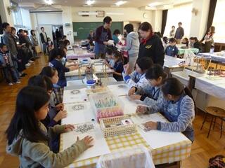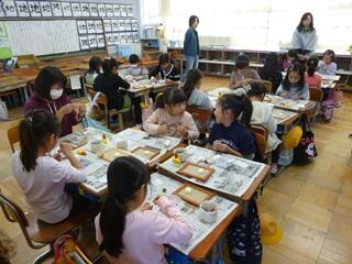 また、学年別に見学する時間を取りました。化石や昆虫等の多くの展示品を見たり、火おこしや石臼の体験をすることができました。 (担当:教務主任)