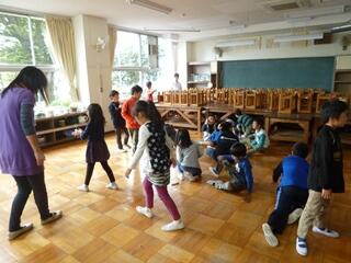 2回目のb o k s を行いました。今回は、根無さんの他に2名のインストラクターに指導をしていただきました。高学年恒例の「S ケン」について運動の意味やルール説明を教えていただきながら運動を行いました。S ケンの激しい運動で、すでに筋肉痛の児童もいるようです。次回も「Sケン」にチャレンジします。 (担当:小野里)
