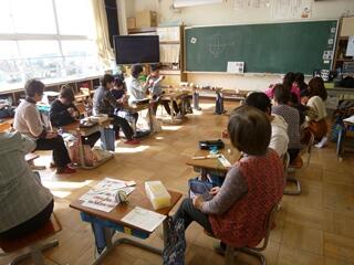 5年生恒例の環境学習のお話でした。先週の大金先生の続きのように、自分たちの住んでいる地域の保護についての話だったので、とても興味深く聞きました。写真や標本を興味深く見て、今まで何気なく通り過ぎていた所だったので、改めて見てこようと関心が高まりました。来月、実際に活動に意欲的に参加できると思います。 (担当:塚原 撮影:小野里)