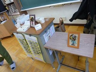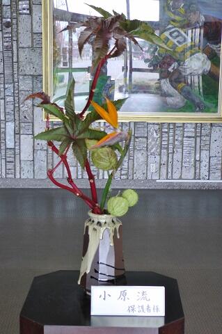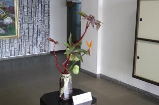 評)「紅切つつじ」お正月には欠かせないおめでたい枝です。これから寒さが厳しくなる時期ですが、実は・・・そこまで南小には、暖かさ(早春)が来ているのかもしれません・・・?黄色と白の色味がとても素敵です。是非、地域の皆様作品をご覧に学校へ足をお運びください。お茶しかありませんが、お出しいたします。一杯いかがでしょうか。
