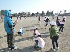 今日は、手を使うサッカー「テッカ-」を行いました。サッカーは、ボールを足で蹴りますが、テッカ-は手でボールを投げ、キーパーは手を使わず体や足でボールを止めます。移動は、しゃがんだままか、膝をついて動きます。立ってはいけないので、子どもたちは、赤ちゃんがハイハイするような格好でボールを追って動き回ります。思うように動けないため、なかなか点が取れませんでしたが、パスを出すことに気づいてからシュートが決まるようになりました。冬至とは思えない暖かさでしたが、新しいスポーツでたくさん汗を流しました。 (文責:地神)