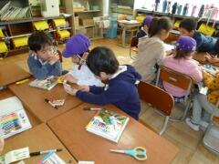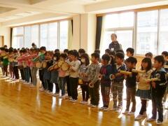 氏家幼稚園と第二氏家さくら保育園の年長さん53名と、交流会をしました。音楽の時間に学習した曲を聴いてもらったり、学校案内をしたりしました。牛乳パックを利用したパッチンがえる作りがメインの活動でしたが、1年生は優しくてていねいに作り方を教えていました。いつもは小さく見える1年生がちょっぴりお兄さんお姉さんに見えたなぁ~。 (担当:三尾谷教諭)