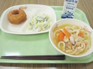 煮込み氏家うどん・かんぴょうサラダ・卵ドーナツ 580kcal
