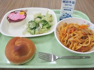 スパゲッティミートソース・グリーンサラダ・チョコプリン 682kcal
