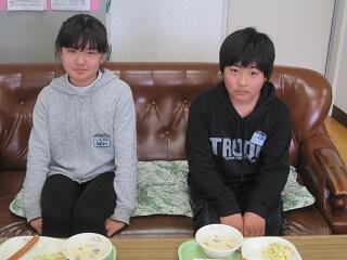 今日のお客様は、とても控え目な素直な二人でした。共通点は、二人ともお姉さんがいるところです。中学校に入ったら、二人とも「運動部」を希望しています。実は、目の前に井上さんがいます。今日の会食は、三人でした。どうしてかというと・・・給食を運んできてくれたのです。このような優しさを大切にして欲しいと思います。話してみると、一人ひとりしっかりしています。その陰には、保護者の愛情たっぷりの暖かな子育てを感じます。