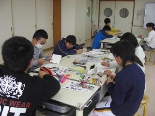 6年生は図書室と理科室に集まって、各班の下級生に励ましのメッセージを作りを行いました。