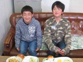 今日のお客様は、笑顔が素敵な男の子二人です。一年生の時から六年生まで、6年間同じクラスで過ごした仲間です。「将来の夢」は、二人とも人の役に立つ職業をめざしています。これで、日本の将来は平和な日々が送れると思います。二人とも、6年2組が大好きと力を込めて言っていました。この「給食シリーズ」も残すところ、あと一回となりました。月日が経つのは早いものです。卒業式まで、あと・・・