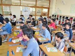 3校時に避難訓練を行いました。地震発生から、火事が起きた場合を想定し速やかに校庭に避難できるように訓練しました。氏家消防署の方にも来ていただき、「安全な避難」の仕方などを教えていただきました。反省点・課題については、早急に改善していきます。