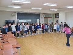 今日は、清掃ボランティアの皆様が、給食を食べにいらして下さいました。そこで、昼休み、6年生が校外学習で留守ですが、頑張って合唱を発表しました。4年生と5年生19名しかいませんでしたが、さすが地区音楽祭最優秀賞に輝いた合唱部。立派に歌うことができました。南っ子の頑張る力を発揮してボランティアの皆様に真心を届けることができました。 (担当:鈴木さ)