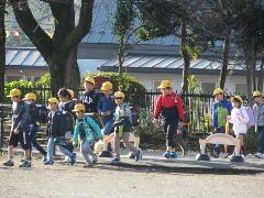 1年生の校外学習で、さくら市総合公園に行きました。台風一過の翌日でしたので、ドングリやクヌギ・クリなどがたくさん落ちていました。友だちや先生と拾った実を見せ合いドングリから出ていた芽を見て喜び、実も生きていることを感じ取る場面が見られました。また、遊具でも楽しく遊びました。 (担当:石川)