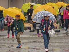 雨の登校でしたが、今朝は2年3組の児童が中心となって元気な声で「あいさつ運動」を展開しました。ご苦労様でした。