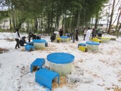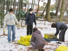 昨日、超低温の中「南の森」の整備を行いました。先生方も作業に熱が入り、暗くなるまでの作業となってしまいました。
