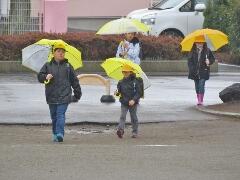 風の影響で、傘が壊れた児童が数人いました。けがはありませんでした。